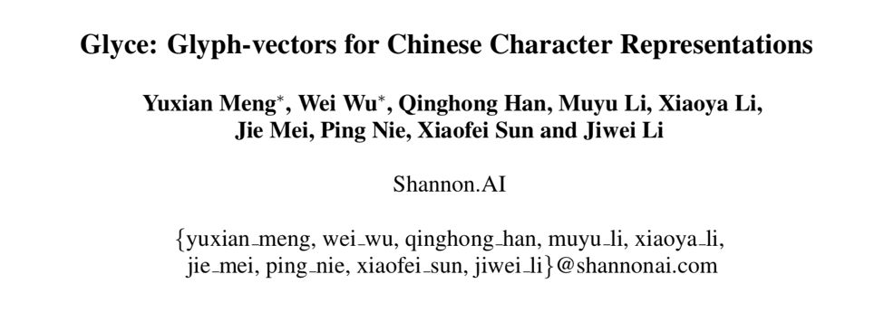 香侬科技近期提出 Glyce,首次在深度学习的框架下使用中文字形信息(Glyph),横扫 13 项中文自然语言任务记录,其中包括:(1) 字级别语言模型 (2) 词级别语言模型 (3) 中文分词 (4) 命名实体识别 (5) 词性标注 (6) 句法依存分析 (7) 语义决策标注 (8) 语义相似度 (9) 意图识别 (10) 情感分析 (11) 机器翻译 (12) 文本分类 (13) 篇章分析。