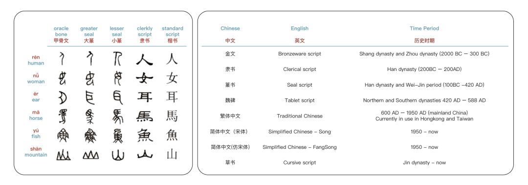 ▲ 图2:Glyce提出运用不同历史时期的中文字符表示