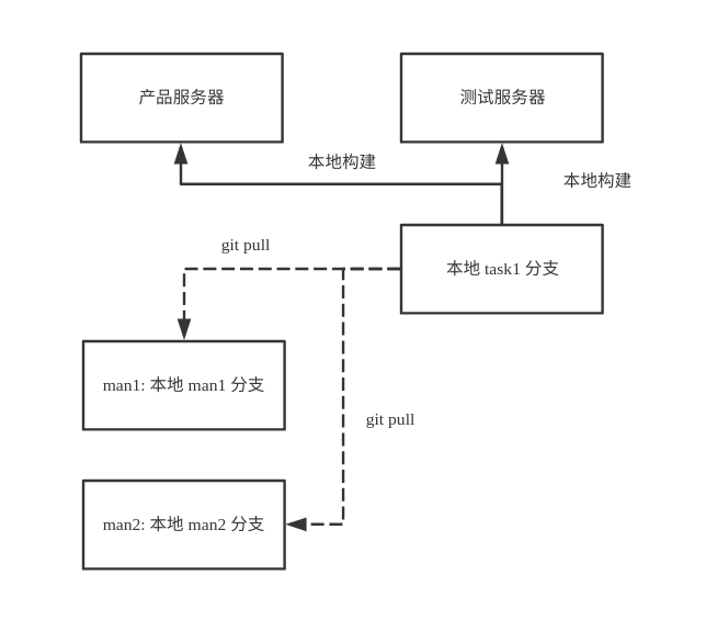上面的图例只有测试服务器和产品服务器,更多服务器类型的工作流程是类似的;图例也只有 man1