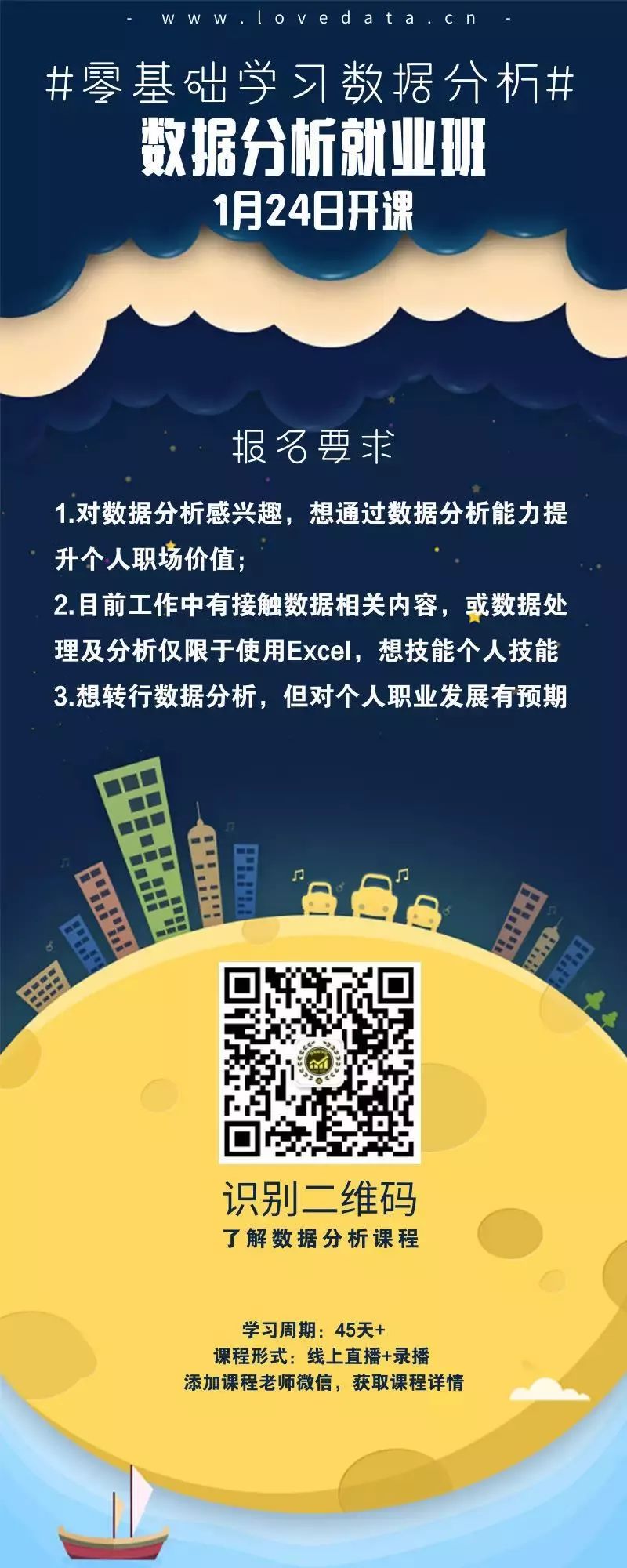中国统计网联合爱数据学院出品的【零基础入职数据分析—就业班】帮你解决转行难,技能不过关等问题!扫描下方二维码快来咨询吧!