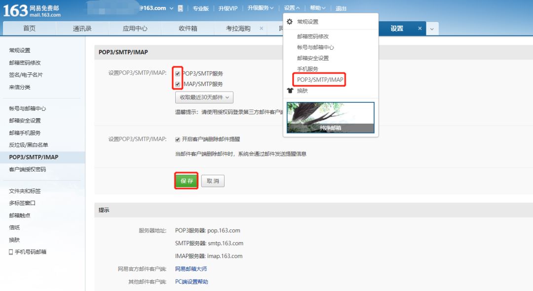 在开始进行正式代码之前,需要先登陆自己的163邮箱进行授权设置,授权码设置如下: