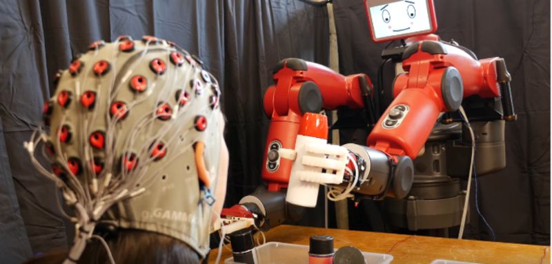 一种记录大脑活动的非侵入式的方法是脑电图(EEG),这项技术通过放置在病人头皮上的电极记录大脑的电压波动。通常会有大约30个这样的电极被放置在头皮周围,以记录脑电波的整体波动。总之,大脑活动与EEG信号之间的关系非常复杂,除了一些特定的实验室试验之外,人们对其了解甚少。由此,产生了一个巨大的挑战:如何对这些EEG扫描结果进行“解码”,从而通过非侵入式的脑机接口(BCI)控制机器人假肢或者其他设备。
