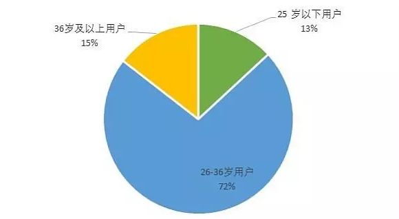 25 岁以下用户占比为13.1%。26-36岁用户占比72.4%,36岁及以上用户占比14.5%。