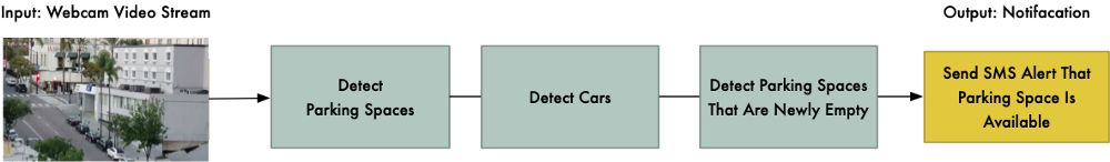 每当您遇到一个看似困难的问题时,请花几分钟时间看看您是否能够采用不同的方式来解决避免某些技术上的挑战。 到底什么是停车位呢? 停车场只是停车场很长一段时间的地方。 所以也许我们根本不需要检测停车位。 我们为什么不能只检测那些长时间不动的车并假设它们在停车位?