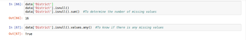 看District列,我们想检测该列是否有空值并统计空值的总数。