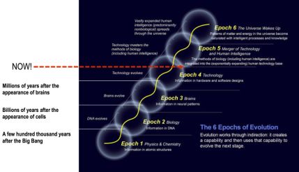 自从宇宙起源以来,生命就踏上了漫长的演化之旅。正如Ray Kurzweil在其名著《奇点临近》中指出的那样,智能的发展大致可以分为六个阶段:
