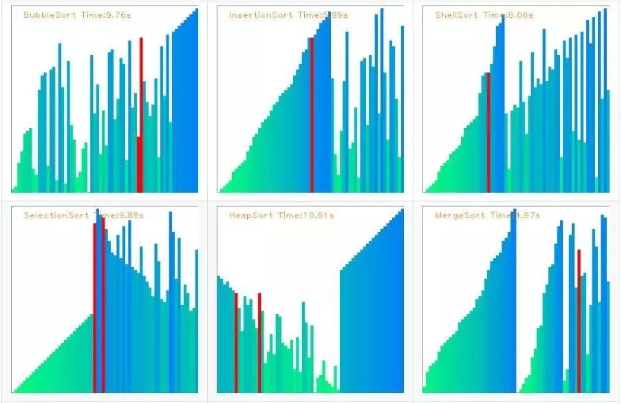 不知道作者是怎么做的,但是突然很想自己实现一遍,而且用python实现特别快,花了一天的时间,完成了这个项目。主要包括希尔排序(Shell Sort)、选择排序(Selection Sort)、快速排序(Quick Sort)、归并排序(Merge Sort)等九种排序。