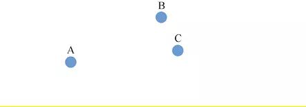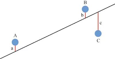 比如,计算3个点到直线距离之和的最小值。首先,随机选择一条线,直线上方有A、B、C共3个点,如图1.6所示。