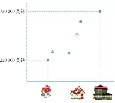 在图1.2的情景中,你先考查了一栋600平方英尺(约56m2)的房子,价格是220 000英镑(约1 942 578元)。这个房子的确很不错,但是它并不满足你的要求——你将和你的家人一同居住,而这个房子面积太小,并不能让每个人都住得舒适。所以,你继续研究并找到一栋1700平方英尺(约158m2)的房子,价格是730 000英镑(约6 445 827元)。这个房子满足你的要求,但是它的价格有些超出你现在的预算——你的预算与小面积房子的价格相比要高一些,但也不像大房子的价格那么高。然而,只有当你与业主或代理人见面并提交详细资料后,才能得到房子的实际价格。但是你并不想与每一个业主或者代理人见面。
