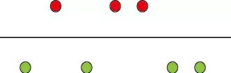 图1.20显然,仅仅使用一条直线并不能将红点和绿点分开,既然这样,那使用两条直线呢?如图1.21所示。