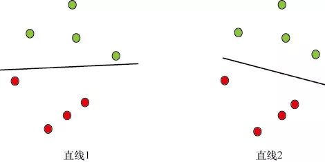 在处理数据时,对于一条分割数据点的直线,可能有不同的选择。如图1.23所示的两个例子。