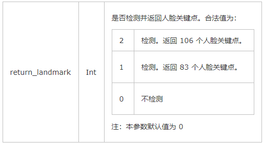这里我们要注意的是:return_landmark 参数不能为0,不然不会返回人脸关键点。