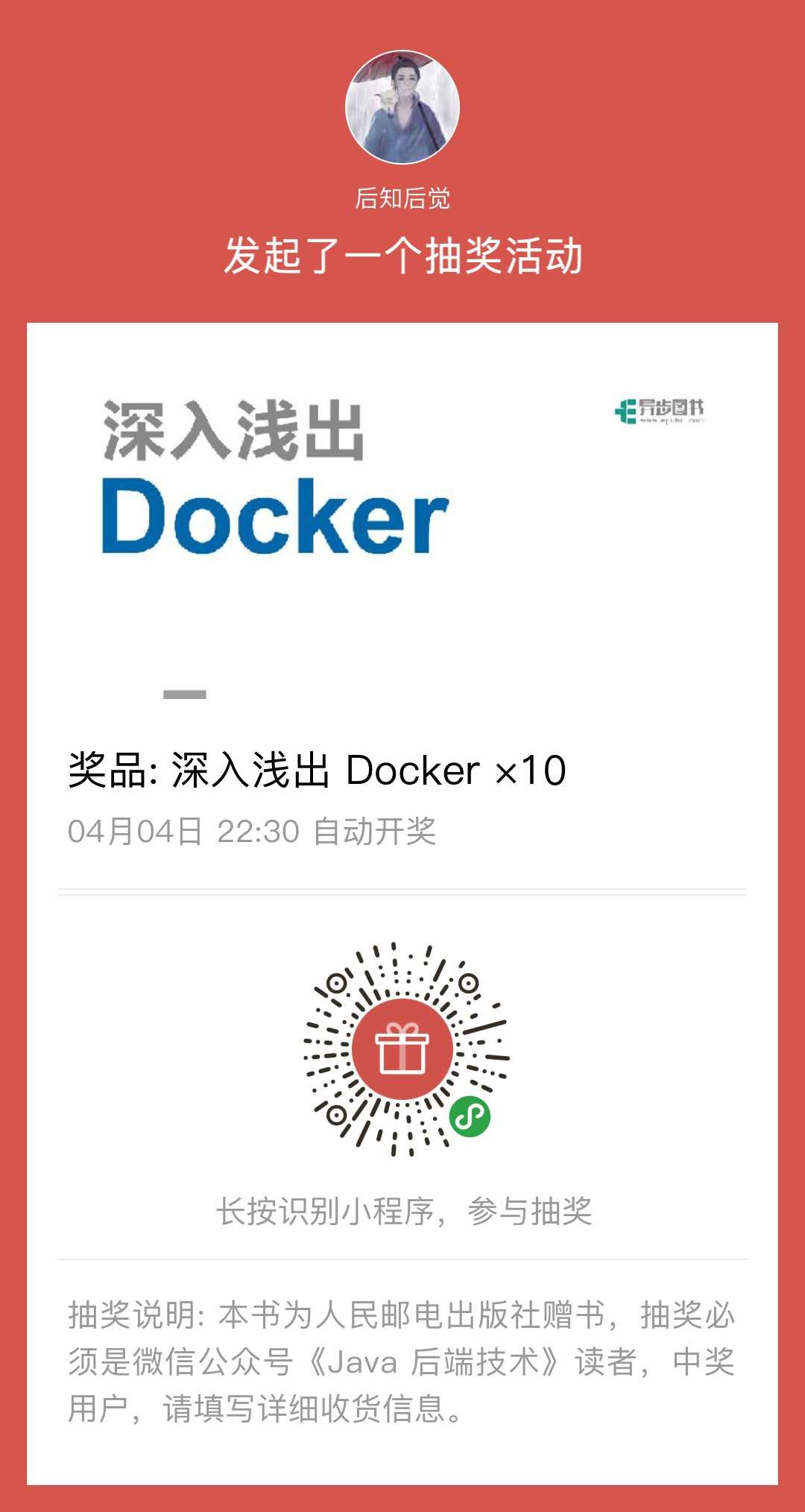 今天Java后端技术 联合 人民邮电出版社 为大家赠送 20 本关于Docker的免费书籍,《深入浅出Docker》和《第一本Docker书》。