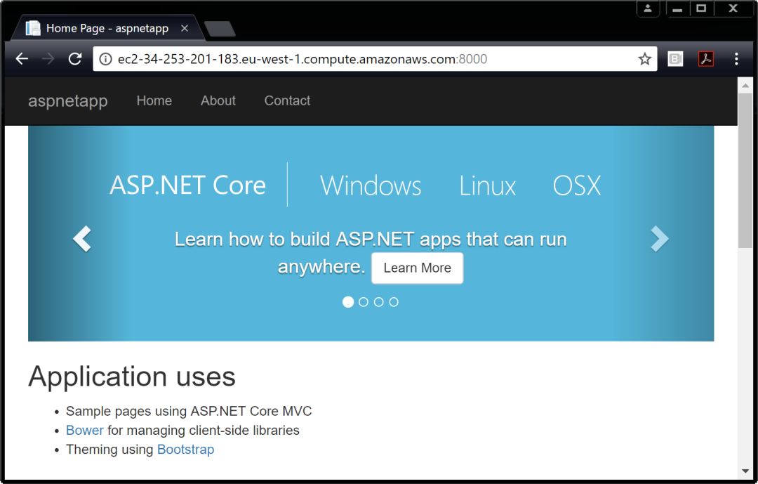 Linux的示例是一个简单的Node.js Web应用。Windows示例是一个简单的ASP.NET Web应用。