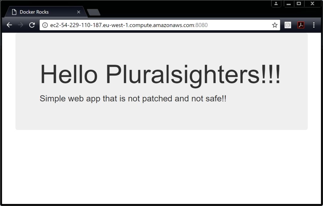 打开Web浏览器,在地址栏中输入容器运行所在的Docker主机的DNS名称或者IP地址,并在后面加上端口号8080