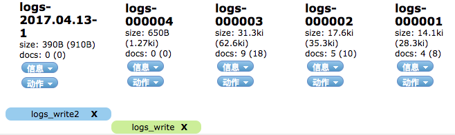 假如我们已经创建了索引 active-logs-1 ,当然你可以通过 _bulk API 快速写入测试的数据,然后参考上文中介绍的 Rollover API 进行切割。