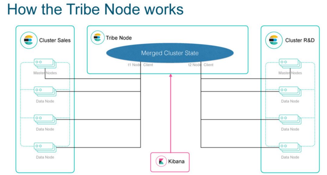所不同的是 Tribe 是针对多个 ES 集群之间的所有节点,Tribe Node 收到请求广播到相关集群中所有节点,将结果合并处理后返回。