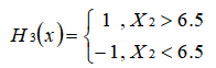 用浅绿色底纹标记的表格,是被 H2(x) 分错的样本。 可得分类函数: