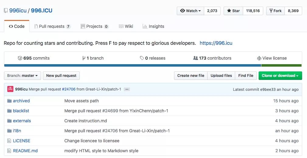 最近比较火的996icu项目我们说他有10多万的Star,就是说由10W+的人关注了这个项目。