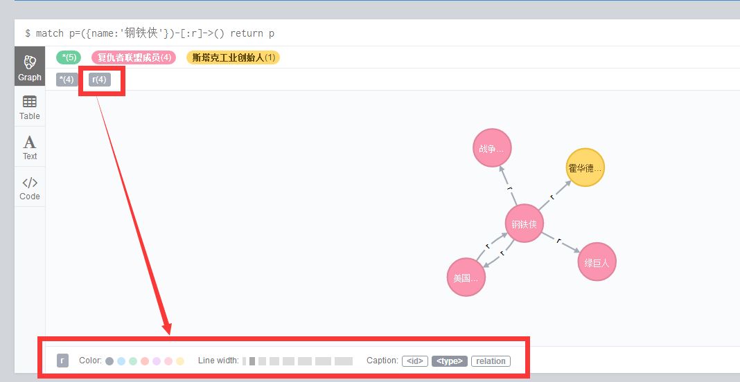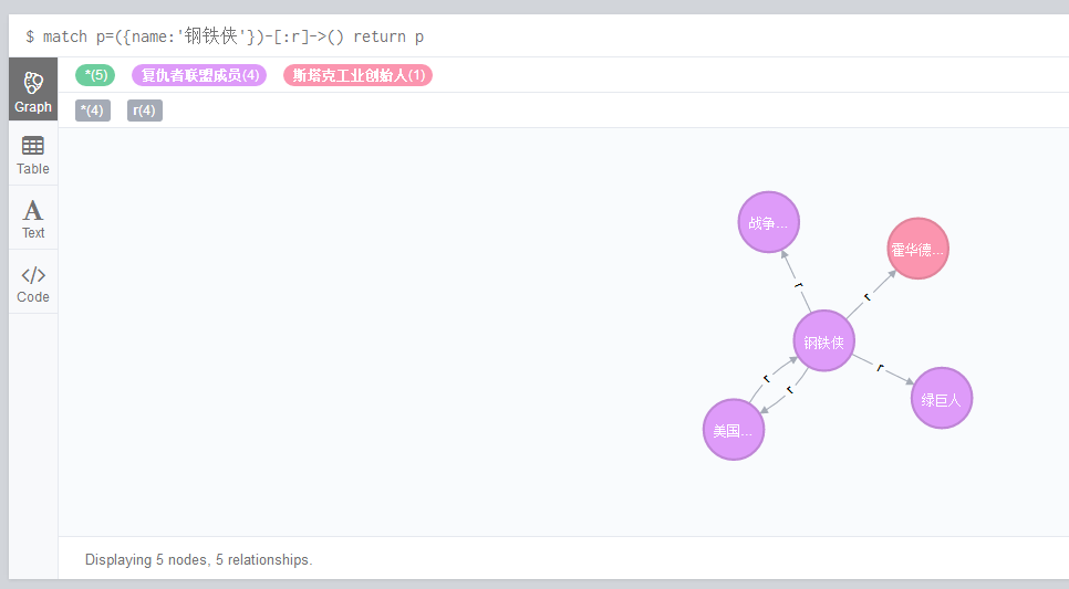 match p=({name:'钢铁侠'})-[:r]->()return p