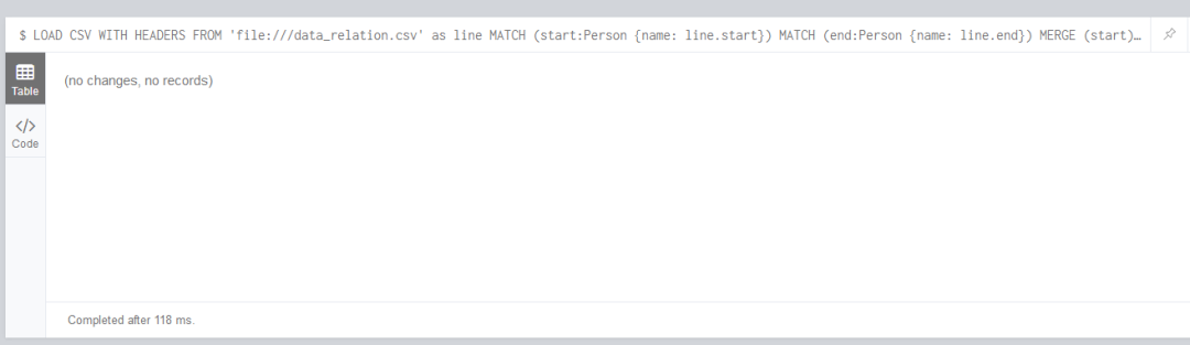 导入关系数据,由于导入节点的时候,并没有设置标签,所以导入关系数据的时候,也不需要设置节点标签。