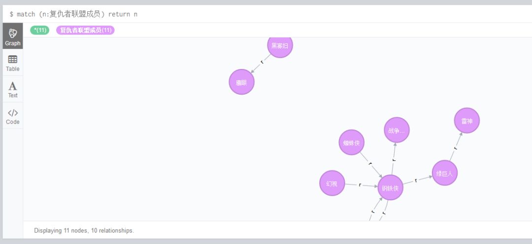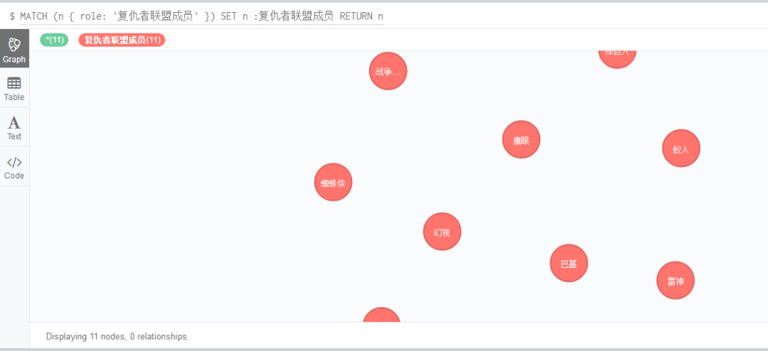MATCH (n { role: '复仇者联盟成员' }) SET n :复仇者联盟成员 RETURN n
