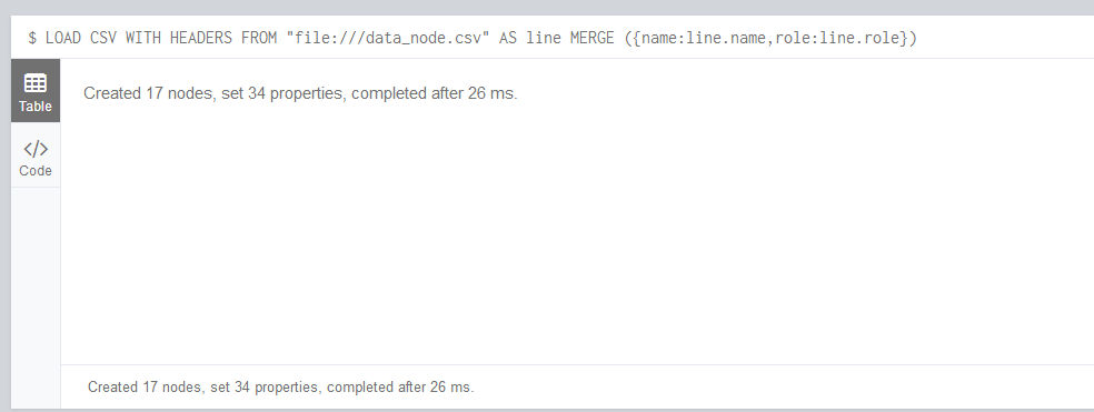 LOAD CSV WITH HEADERS FROM "file:///data_node.csv" AS line MERGE ({name:line.name,role:line.role})
