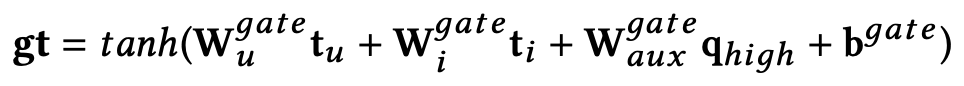 通过高速网络后,为了过滤无效特征,PARL 利用门机制,结合已经得到的用户表达和商品表达来最终选择