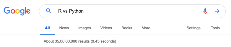 如果你想进入数据科学领域,你可能立即会想到R和Python。然而,我们并不是要以作为两种选择来考虑他们,相反地,我们更多的是去比较他们。R和Pyhton在他们各自的领域里,都是非常完美的工具。尽管如此,他们往往成为各自敌人而争吵。如果你在谷歌搜索栏里输入“R vs Python”,你会看到非常多的关于他们霸权之争。