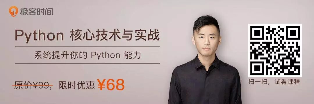 据我所知,大部分初学者都可能卡在这里,前进无门。但是,我们不得不说,解决这些问题,是一名合格 Python 工程师的基本能力。为了帮助用户从一个初学者进阶为优秀的 Python 工程师,我联合极客时间开设了一个专栏 --《Python 核心技术与实战》,希望能帮你系统地提升 Python 实战编程能力。