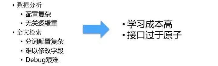 学习成本高和接口过于原子,虽然是业务的痛点,但是对ES本身而言却反而是优点,为什么学习成本高呢?因为功能丰富。而为什么接口原子呢?为了让上层可以灵活使用。