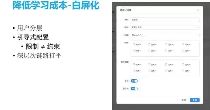 对于专家用户,基本就是 ES 所有的功能可视化,加快使用速度。对于小白用户而言,则是完全屏蔽这些功能点,让其可以直接使用。