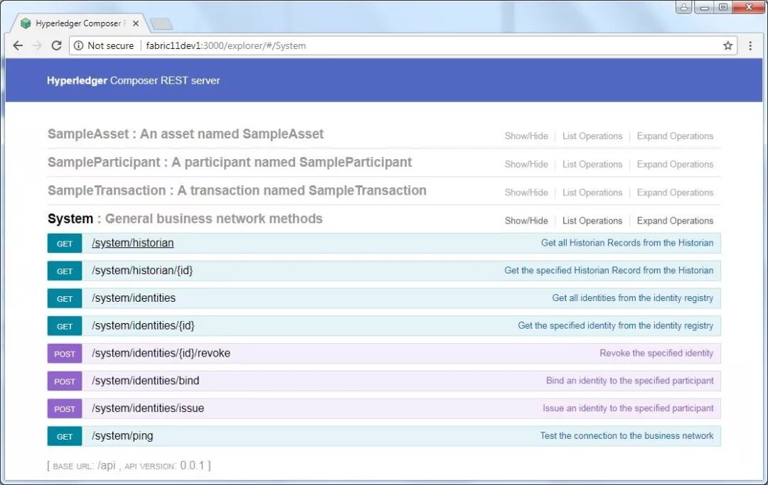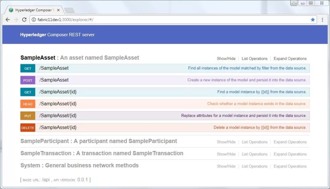 Composer REST server 可以根据我们开发、部署的区块链应用自动生成一些 RESTful API 接口,以方便通过浏览器、curl 等工具对之进行访问。