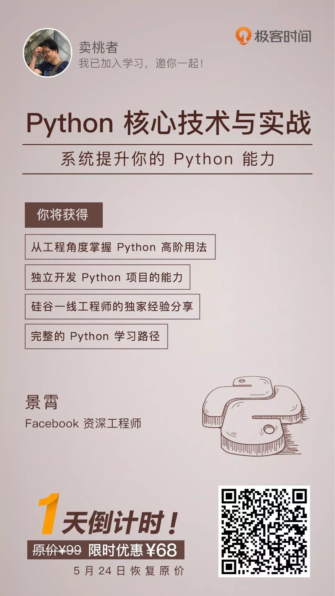 以上内容来自极客时间新上线的专栏「Python 核心技术与实战」的备稿内容中的一小节,完整文章还包括了匿名函数 lambda 的详解,还未发布,先睹为快。今天是 Python 专栏优惠期最后一天,已经有 8000+ 用户加入学习,也推荐给你,大数据时代,Python 必学必会。