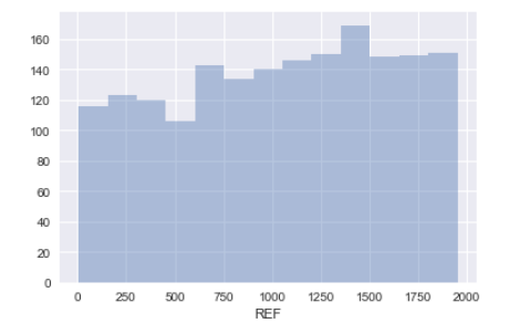 sb.distplot(chocolate_data['REF'],kde = False)plt.show()