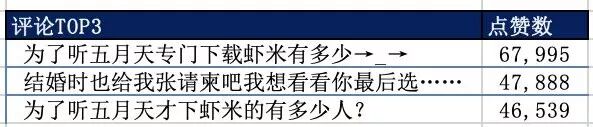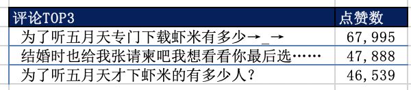 关于歌曲评论,我只简单爬取了每首歌的第一条热门评论和点赞数,你猜怎么着?点赞数最高的3条内容,其中两条内容迷之接近: