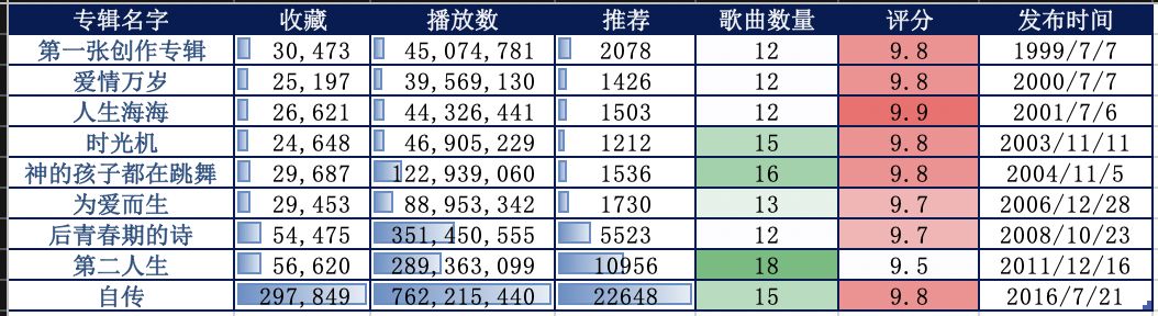 再看到发布时间的月份,4张专辑都是在7月份,其余的分布在10月、11月和12月,这…...难道是某种症(拖延症?)的体现?