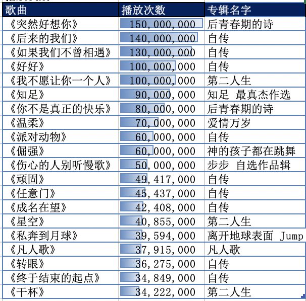 虽然《自传》专辑的歌曲拥有45%(9首)的占榜率,但是耳熟能详的《突然好想你》仍然以1.5亿次的播放量稳居TOP1。