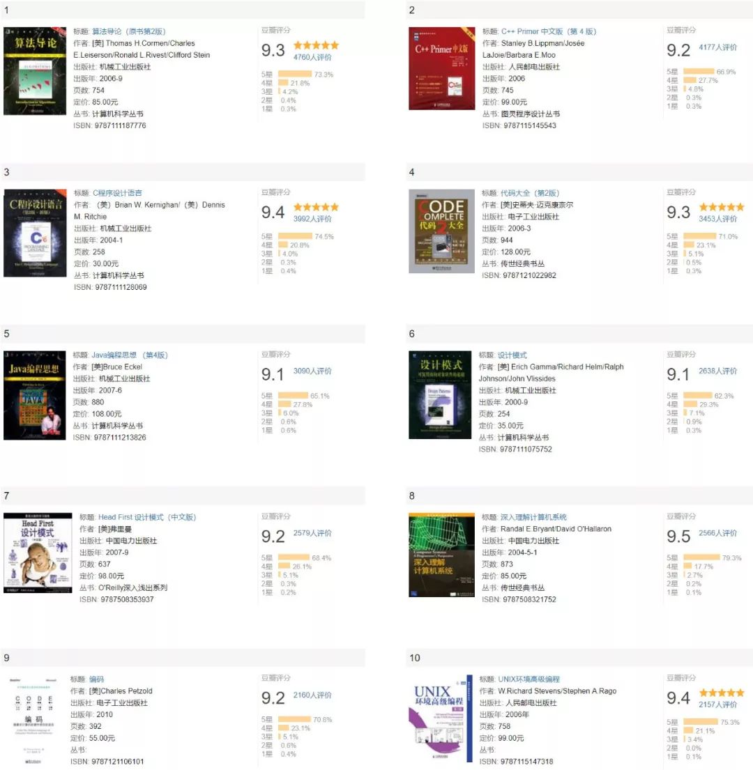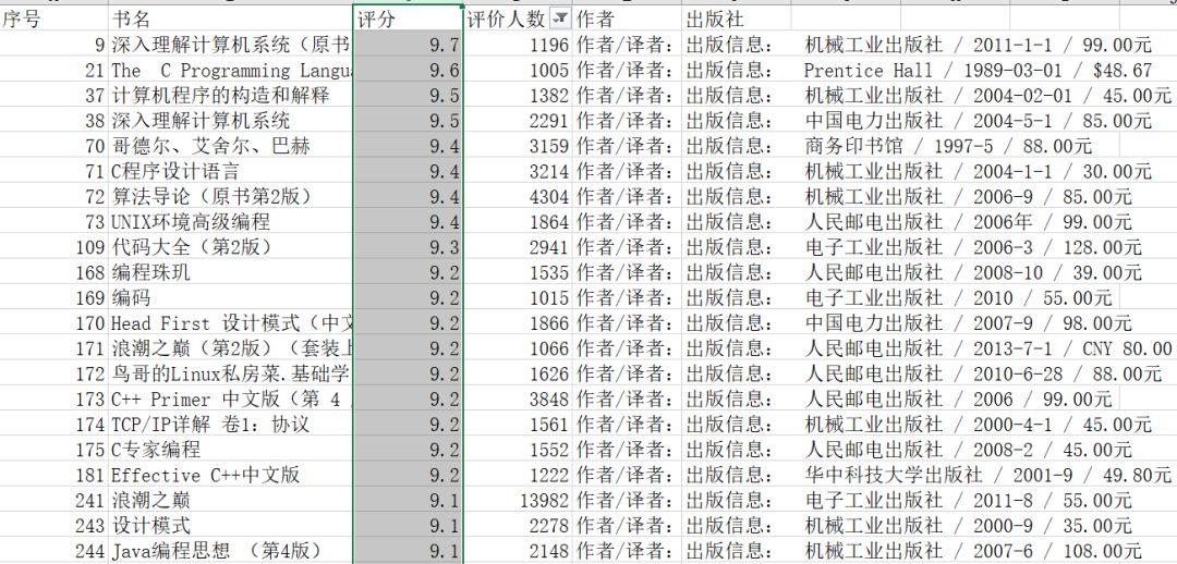 通过查看各大销售网站的销量数据和评价,以及豆瓣评分和评价人数,可以帮助我们更快的挖掘出经典的计算机书籍,还有那些被人们忽视的好书。