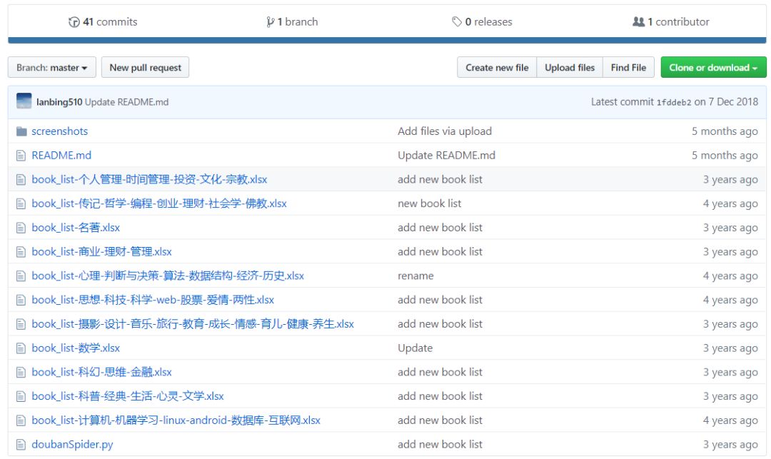 最近在GitHub上发现了一个网站,是中国科学院自动化研究所的一大神(lanbing510)用Python写的一个爬虫,他在16年的时候就爬下了豆瓣所有的读书数据并做了个WebApp接口方来挖掘查找和阅读好书。怪我知道的太晚