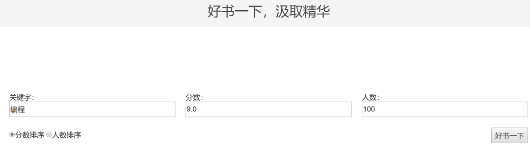 可以看出这网站的界面非常简洁,没有花里花哨的内容,只有干货,你可以直接通过关键字、分数、和评价人数这三个选项进行搜索,比如我们可以搜索关键字:编程;分数:9.0;评价人数:100人以上