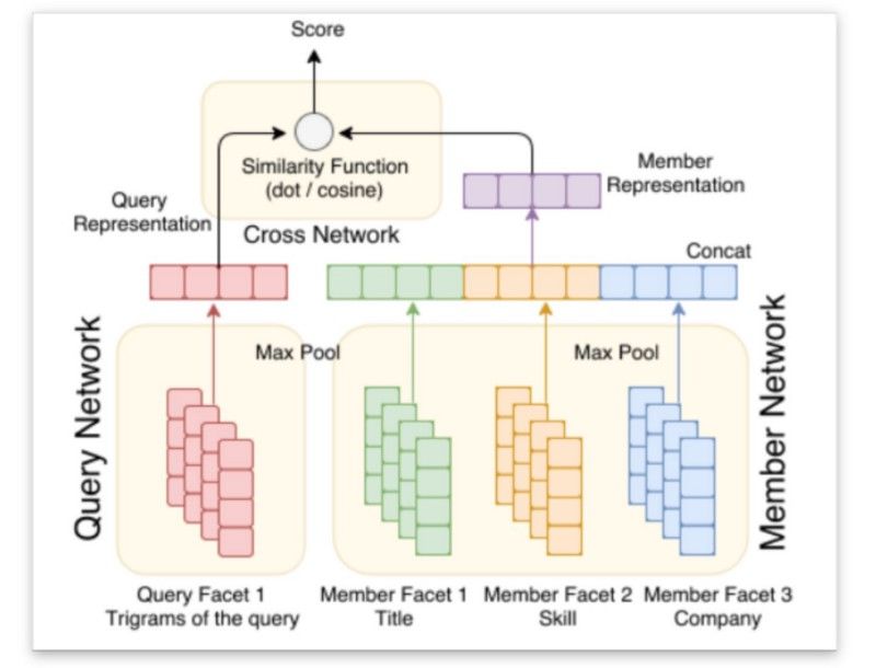 Linkedin Recuriter的另一个挑战是,如何将应聘者与“数据科学家”和“机器学习工程师”等相关头衔匹配起来。仅使用GBDT很难建立这种相关性。为了解决这个问题,LinkedIn引入了基于网络嵌入语义相似特性的代表学习技术。在这个模型中,搜索结果将根据查询的相关性由具有类似职位的候选人补充。