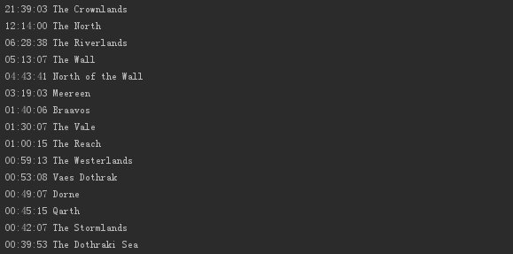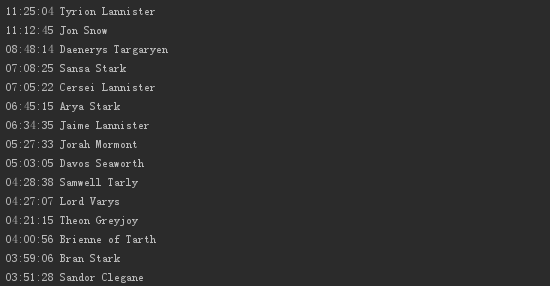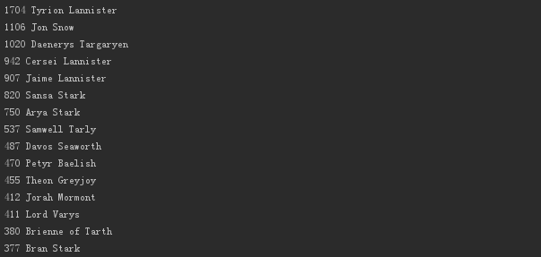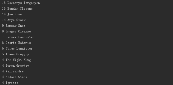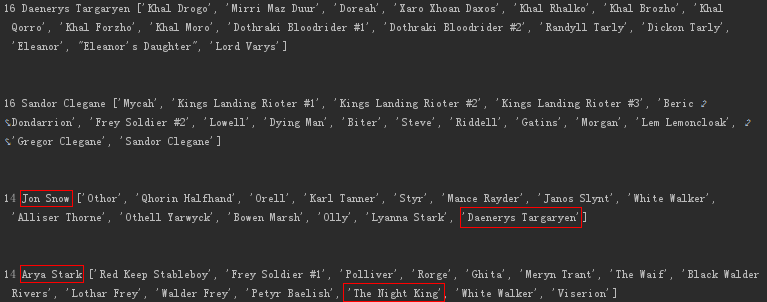 attr = ['提利昂', '雪诺', '龙妈', '三傻', '瑟曦', '二丫', '詹姆', '莫尔蒙', '戴佛斯', '山姆', '瓦里斯', '席恩', '布蕾妮', '布兰', '猎狗']