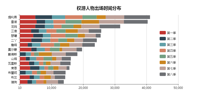 bar = Bar("权游人物出场时间分布", title_pos='center', title_top='18', width=800, height=400)