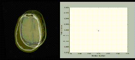 下面的动画是使用SimpleITK和Python创建的可视化的严格CT / MR配准过程。