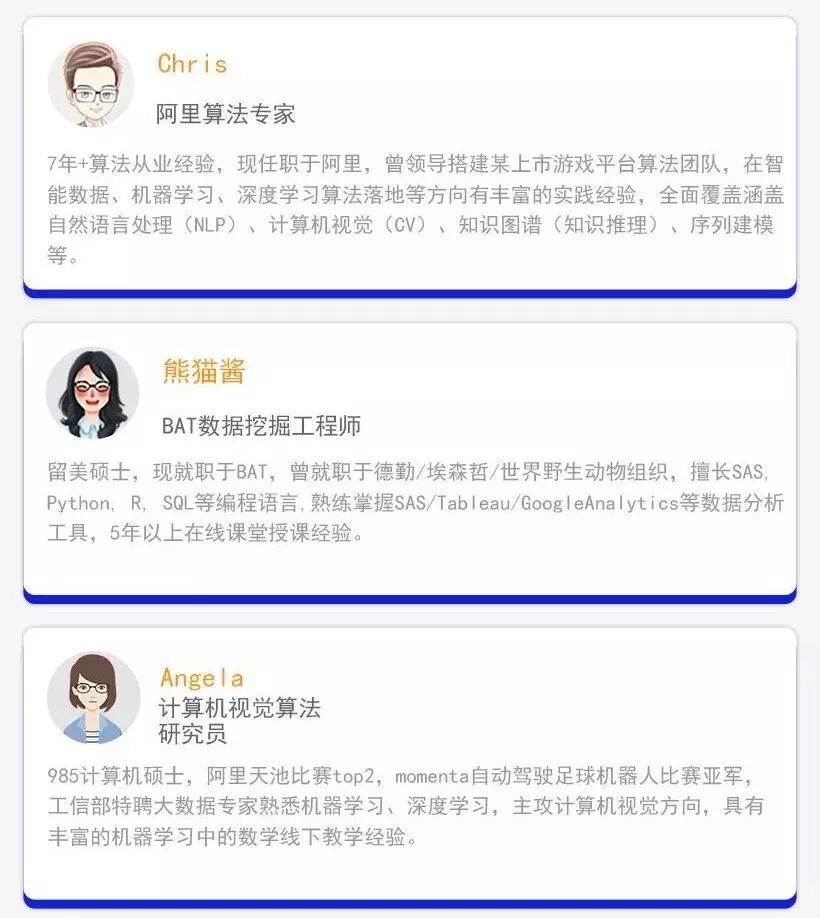 为了能让更多初学者了解机器学习/数据分析/数据挖掘等岗位的工作流程,找到入门的切入点,我特地邀请了两位人工智能不同领域的专家,一位BAT的数据挖掘工程师@熊猫酱,一位计算机视觉方向的专家@Angela,还有我阿里高级算法工程师@Chris,以自身具体的工作流为核心,举办连续四场人工智能入门分享会。