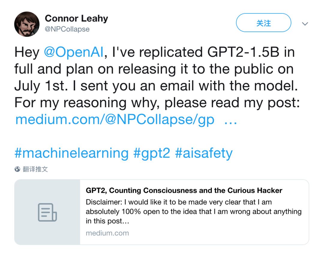 来自慕尼黑工业大学的Connor Leahy同学,在两个月的时间里,付出了200个小时的时间,花费了大约6000人民币,复现了GPT-2项目。