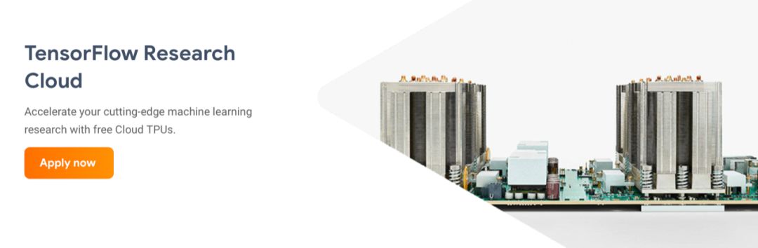 Google有一个Tensorflow Research Cloud(TFRC)计划。这个计划面向研究人员,提供1000个Cloud TPU组成的集群,完全免费。这个计划用于支持多种需要大量计算并且无法通过其他途径实现的研究项目。