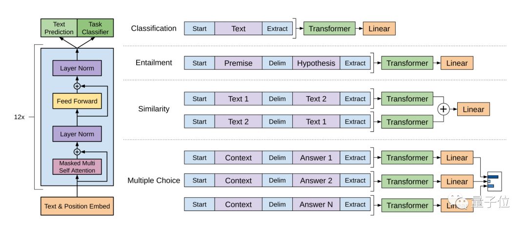 使用语言建模作为训练信号,以无监督的方式在大型数据集上训练一个Transformer,然后在更小的监督数据集上微调这个模型,以帮助它解决特定任务。