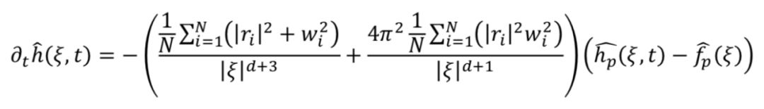 为训练数据点;⋅ ̂: 傅里叶变换;ξ: 频率;N: 隐藏层神经元数目;d: 输入维度;r: 神经元的输出权重;w: 神经元的输入权重;w 与 r 取初始化的值。注意模型不出现 l。时间 t 趋于无穷时,该模型的显式解可以写出来。